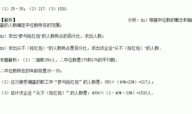 ¡°ÇÀºì°ü¡±ÊÇ2015Äê´º½ÚÊ®·Ö»ð±¬µÄÒ»ÏîÍøÂç»î¶¯£¬Ä³ÆóÒµÓÐ4000ÃûÖ°¹¤£¬´ÓÖÐËæ»ú³éÈ¡350ÈË£¬°´ÄêÁä·Ö²¼ºÍ¶Ô¡°ÇÀºì°ü¡±Ëù³Ö̬¶ÈÇé¿ö½øÐÐÁ˵÷²é£¬²¢½«µ÷²é½á¹û»æ³ÉÁËÌõÐÎͳ¼ÆÍ¼ºÍÉÈÐÎͳ¼ÆÍ¼£®