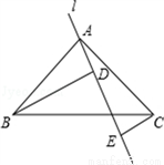如图,Rt△ABC中,AB=AC,∠BAC=90°,直线l为经过点A的任一直线,BD⊥l于D,CE⊥AE,若BD>CE,试问: