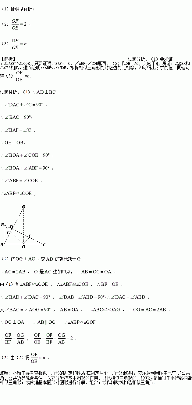 如图,在Rt△ABC中,∠BAC=90°,AD⊥BC于点D,点O是AC边上一点,连接BO交AD于F,OE⊥OB交BC边于点E.