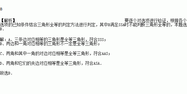 C. 两角和其中一角的对边对应相等 D. 两角和它们的夹边对应相等