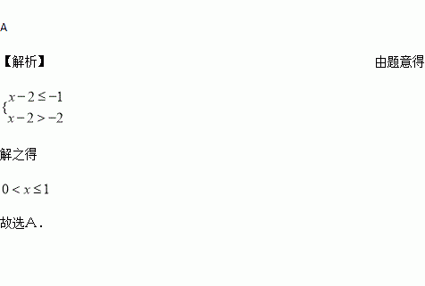 A. 0<x≤1 B. 0≤x<1 C. 1<x≤2 D. 1≤x<2