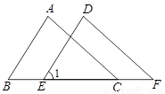 如图,在△ABC和△DEF中,已知AB= DE,BE= CF,∠B=∠1,求证:AC∥DF.
