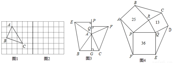 (4)如图4,一个六边形的花坛被分割成7个部分,其中正方形PRBA,RQDC,QPFE的面积分别为13m2、25m2、36m2,则六边形花坛ABCDEF的面积是 m2.
