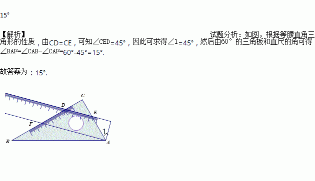 ,点F在直尺的另一边上,那么∠BAF的大小为__°.