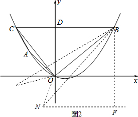 分析 (1)把A(-1,1),B(2,2)代入y=ax2+bx求得抛物线的函数表达式为y=$\frac{2}{3}$x2-$\frac{1}{3}$x,由于BC∥x轴,设C(x0,2).于是得到方程$\frac{2}{3}$x02-$\frac{1}{3}$x0=2,即可得到结论;