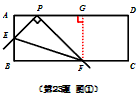 在矩形ABCD中,点P在AD上,AB=2,AP=1,将直角尺的顶点放在P处,直角尺的两边分别交AB,BC于点E,F,连接EF(如图①)。