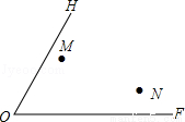 在图中找出点A,使它到M,N两点的距离相等,并且到OH,OF的距离相等.