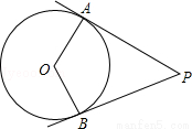 如图,PA、PB是⊙O的切线,切点分别是A,B,如果∠P=60°,那么∠AOB等于( )
