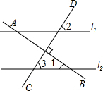 分析:由AB⊥CD,∠1=40°,根据三角形内角和定理,可求得∠3的度数,又由直线l1∥l2,根据平行线的性质,即可求得答案.