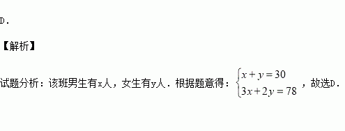 为了绿化校园,30名学生共种78棵树苗.其中男生每人种3棵,女生每人种2棵,该班男生有x人,女生有y人.根据题意,所列方程组正确的是( )
