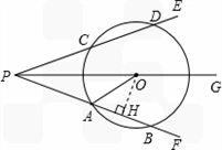 (本题8分)如图,射线PG平分∠EPF,O为射线PG上一点,以O为圆心,10为半径作⊙O,分别与∠EPF 的两边相交于A、B和C、D,连结OA,此时有OA//PE.