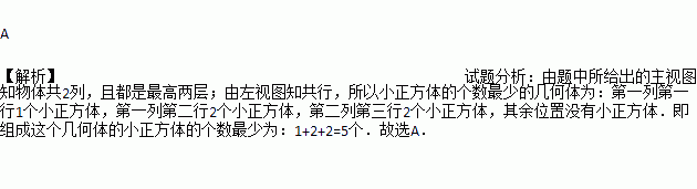 如图是由一些完全相同的小正方体搭成的几何体的主视图和左视图,组成这个几何体的小正方体的个数最少是( )