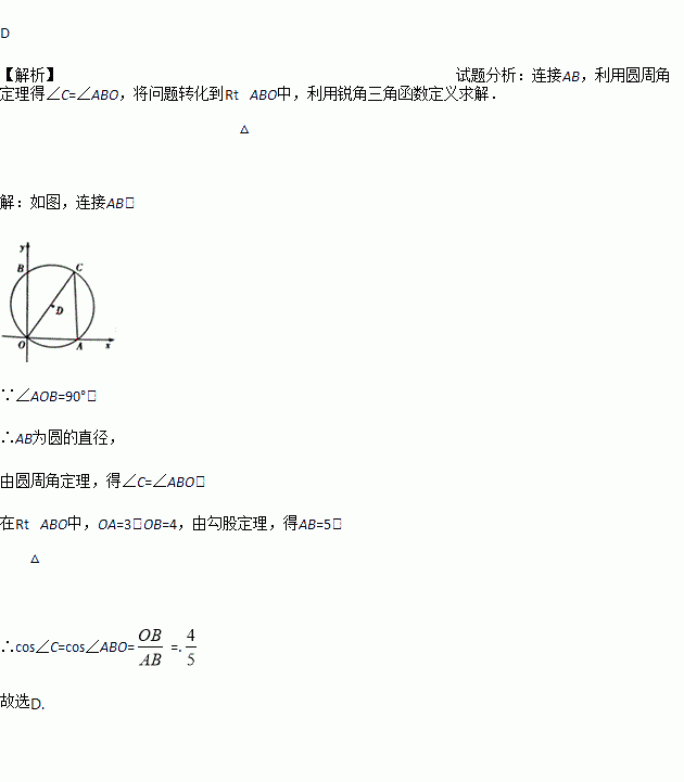 过A,B,O三点,点C为优弧ABO上的一点(不与O,A两点重合),则cosC的值为