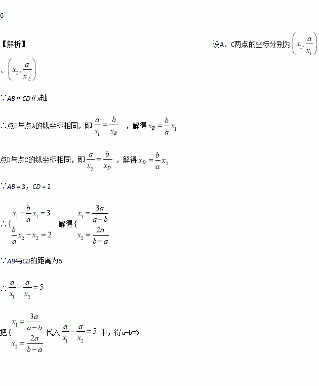(b <0)的图象上,AB∥CD∥x轴,AB,CD在x轴的两侧,AB = 3,CD = 2,AB与CD的距离为5,则a -b的值是________.