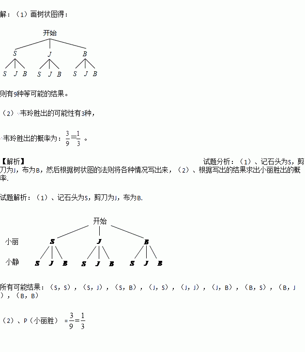 (1)请用列表法或画树状图表示出所有可能出现的游戏结果;