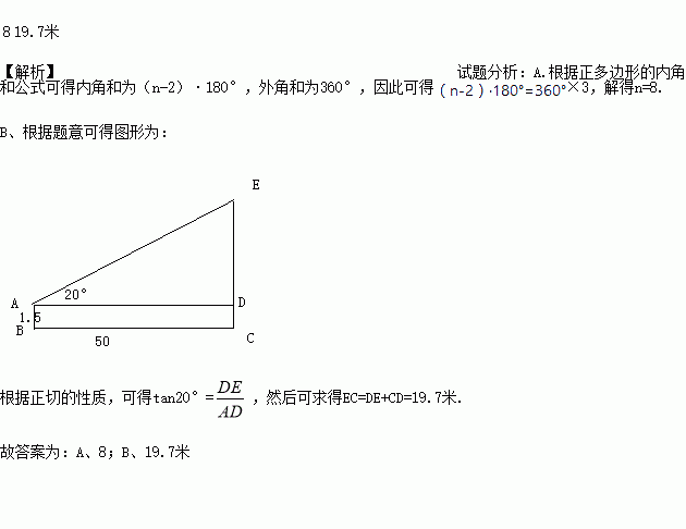 A.一个正n边形(n>4)的内角和是外角和的3倍,则n=____;