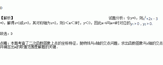 已知二次函数y=x2+2x﹣3,当自变量x取m时,对应的函数值小于0,设自变量分别取m﹣4,m+4时对应的函数值为y1,y2,则下列判断正确的是( )