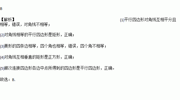 (5)顺次连接四边形各边中点所得到的四边形是平行四边形.
