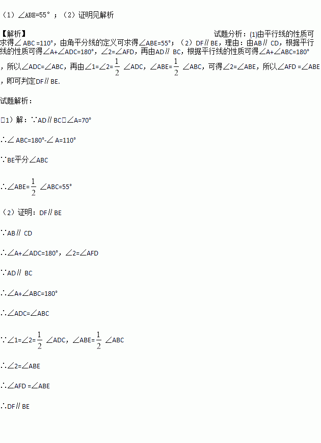 (2)若AB∥CD,且∠1=∠2,判断DF和BE是否平行,并说明理由.