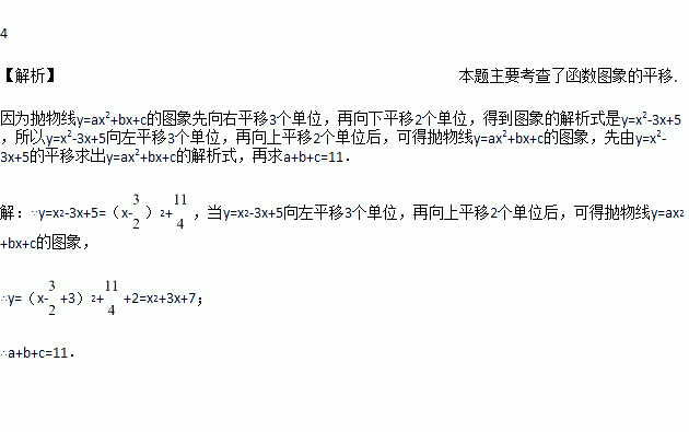 +bx+c的图象先向右平移3个单位,再向下平移2个单位,所得的图象的解析式是y=x