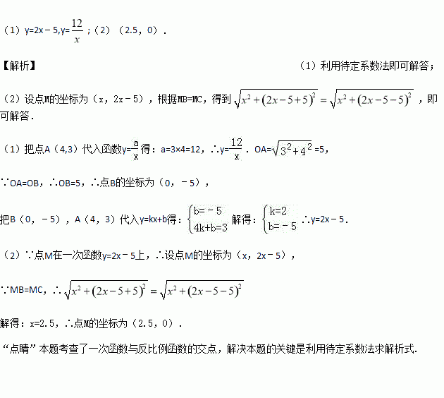 (2)已知点C(0,5),试在该一次函数图象上确定一点M,使得MB=MC,求此时点M的坐标.