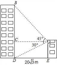 小敏家对面新建了一幢图书大厦,小敏在自家窗口测得大厦顶部的仰角为45°,大厦底部的仰角为30°,如图所示,量得两幢楼之间的距离为20