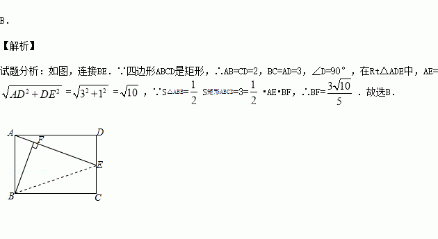如图,在矩形ABCD中,AB=2,BC=3.若点E是边CD的中点,连接AE,过点B作BF⊥AE交AE于点F,则BF的长为( )