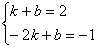 将A(1,2),B(-2,-1)代入y=kx+b中得: