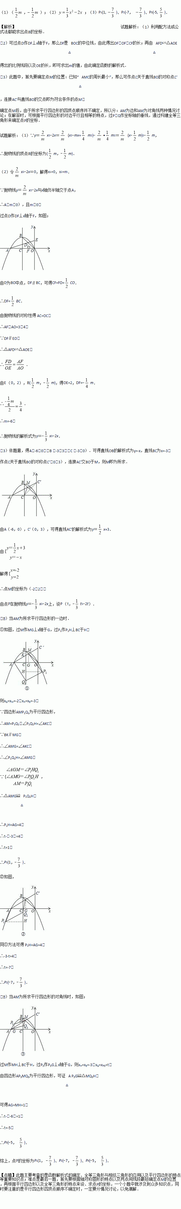 (3)在(2)的条件下,点M在直线BO上,且使得△AMC的周长最小,P在抛物线上,Q在直线BC上,若以A、M、P、Q为顶点的四边形是平行四边形,求点P的坐标。