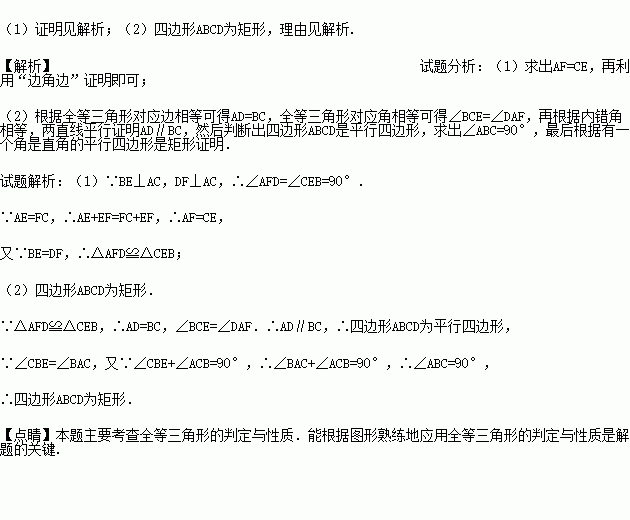 (1)求证:△AFD≌△CEB;
