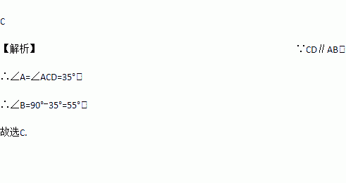 如图,在△ABC中,∠ACB=90°,CD∥AB,∠ACD=35°,那么∠B的度数为( )