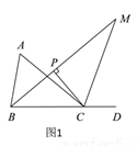 如图1,点D为△ABC边BC的延长线上一点.