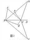(3)在(2)的条件下,将△MBC以直线BC为对称轴翻折得到△NBC,∠NBC的角平分线与∠NCB的角平分线交于点Q(如图2),试探究∠BQC与∠A有怎样的数量关系,请写出你的猜想并证明.
