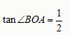 解:(1)在Rt△BOA中 ∵OA=4 ,∴AB=OA×tan∠BOA=2 (2)∵点D为OB的中点,点B(4,2)∴点D(2,1) 又∵点D在的图象上 ∴ ∴k=2 ∴ 又∵点E在图象上 ∴4n=2 ∴ n= (3)设点F(a,2)∴2a=2 ∴CF=a=1 连结FG,设OG=t,则OG=FG=t CG=2-t Rt△CGF中,GF2=CF2+CG2 ∴t2=(2-t)2+12 t =∴OG=t=。