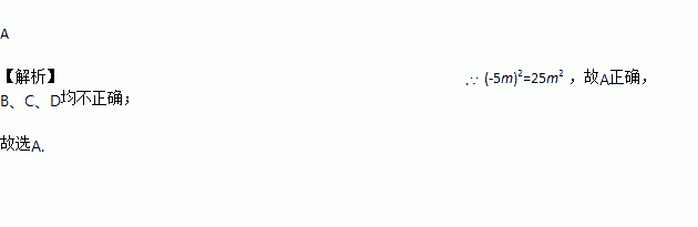 A. (-5m)2=25m2 B. (-5m)2= -25m2 C. (-5m)2=10m2 D. (-5m)2=25m