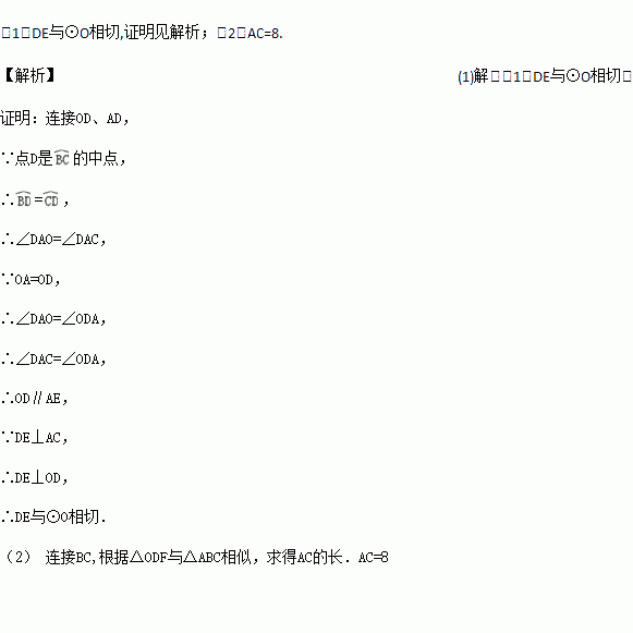 (1)判断DE与⊙O的位置关系,并证明你的结论;