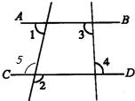 解答:解:如图,∵∠1+∠2=180°,∠2=∠5,