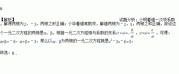 小明和小华解同一个一元二次方程时,小明看错一次项系数,解得两根为2,﹣3,而小华看错常数项,解错两根为﹣2,5,那么原方程为( )