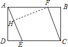 分析 过F作FH⊥AE于H,根据矩形的性质得到AB=CD,AB∥CD,推出四边形AECF是平行四边形,根据平行四边形的性质得到AF=CE,根据相似三角形的性质得到$\frac{AE}{AF}=\frac{AD}{FH}$,于是得到AE=AF,列方程即可得到结论.