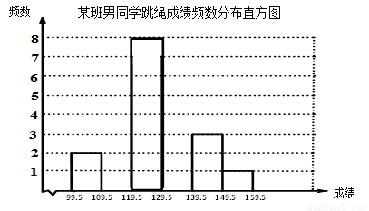 我校八年级全体男同学参加了跳绳比赛.从中随机抽取某班男同学的跳绳成绩,制作了如下频数分布表:
