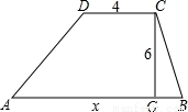 如图,梯形ABCD上底的长是4,下底的长是x,高是6.