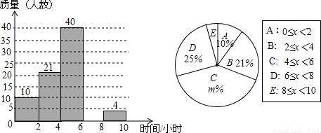 (2)求扇形统计图中m的值和“E”组对应的圆心角度数;