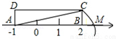 如图,矩形ABCD中,AB=3,AD=1,AB在数轴上, 若以点A为圆心,对角线AC的长为半径作弧交数轴的正半轴于M,则点M表示的实数为