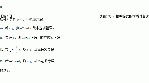 ,则a=b D. 若x=y,则![]()