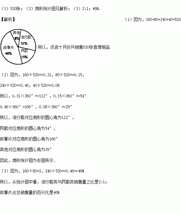 (2)请你改用扇形统计图来表示该店十月份销售音像制品的种类.