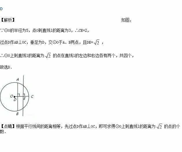 已知⊙O的半径为5,直线l与⊙O相交,点O到直线l的距离为3,则⊙O上到直线l的距离为