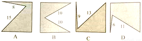 的正方形铁片,过两个顶点剪掉一个三角形,以下四种剪法中,裁剪线长度所标的数据(单位: