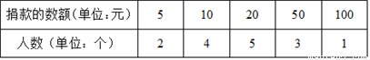 为了帮助本市一名患“白血病”的高中生,某班15名同学积极捐款,他们捐款数额如下表:
