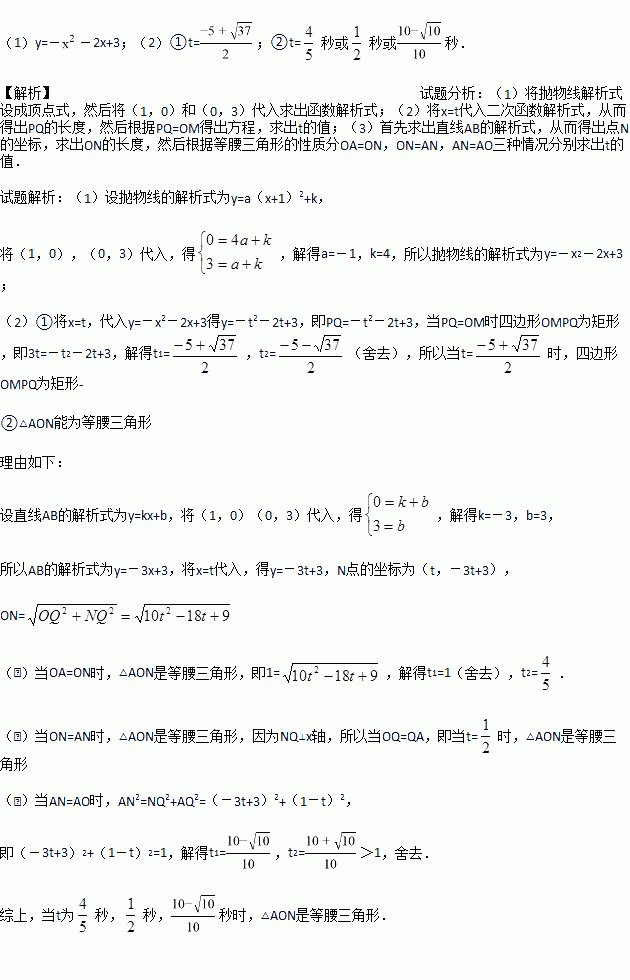 ②△AON能否为等腰三角形?若能,求出t的值;若不能,请说明理由.