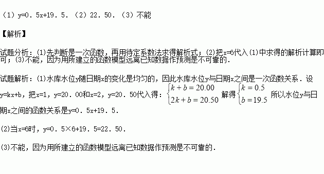 (1)请建立该水库水位y与日期x之间的函数模型;